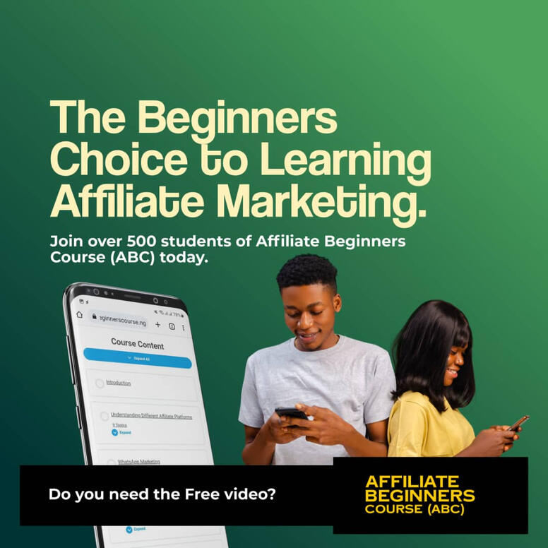 This is called Google Ads and you'll be able to learn and implement this using just your smartphone. Plus Access to YouTube marketing.So are you ready for this journey as an Affiliate Beginners? They're all about you. I'm ready to help you succeed. Are you ready?If YES, Then Affiliate Beginners Course(ABC) is all you need to access all these and get access to lifetime training/mentorship.